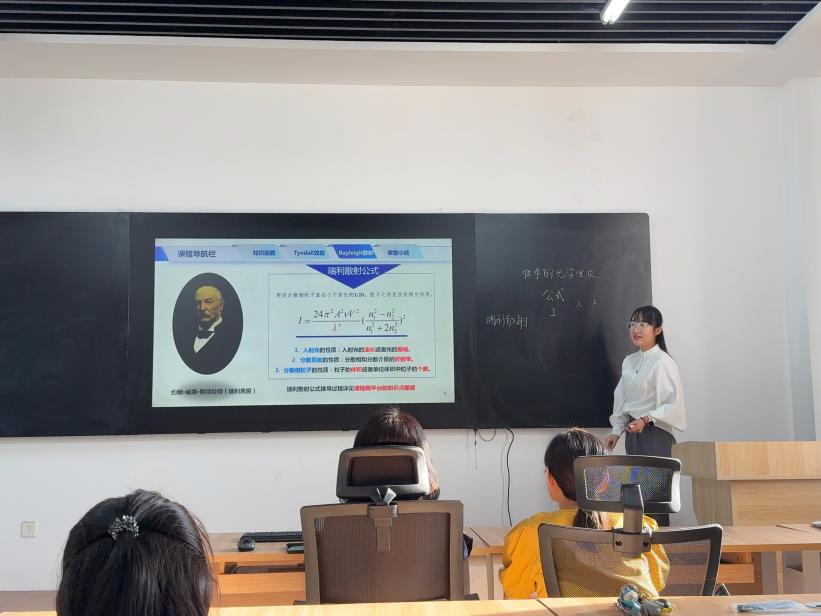 庞靖宇老师则专注于物理化学中“胶体的光学性质”,凭借深厚的专业知识,结合丰富的实验和形象的演示,把抽象的光学原理生动呈现,引导学生理解胶体独特的光学现象及其背后的科学奥秘。